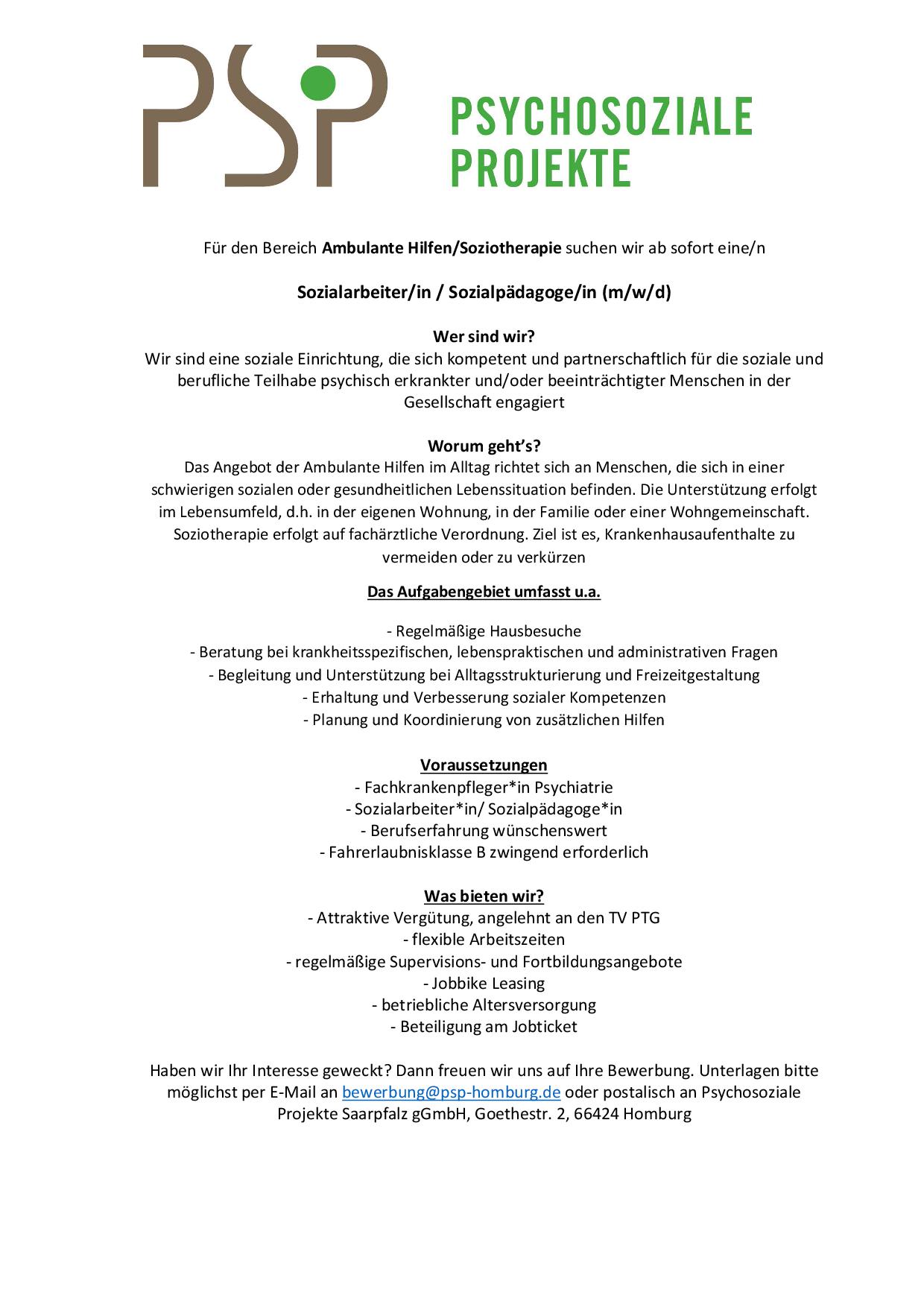 Email: bewerbung@psp-homburg.de