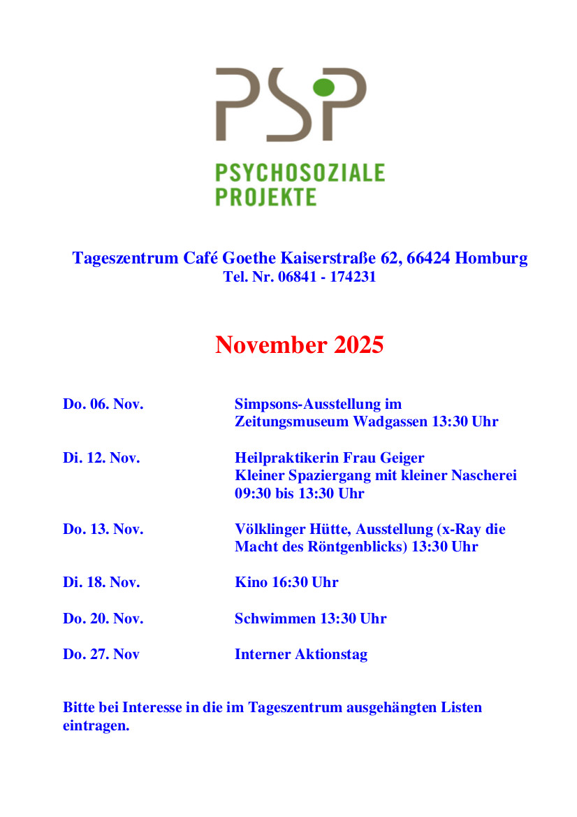 Veranstaltungshinweise Tageszentrum Cafè Goethe November 2025